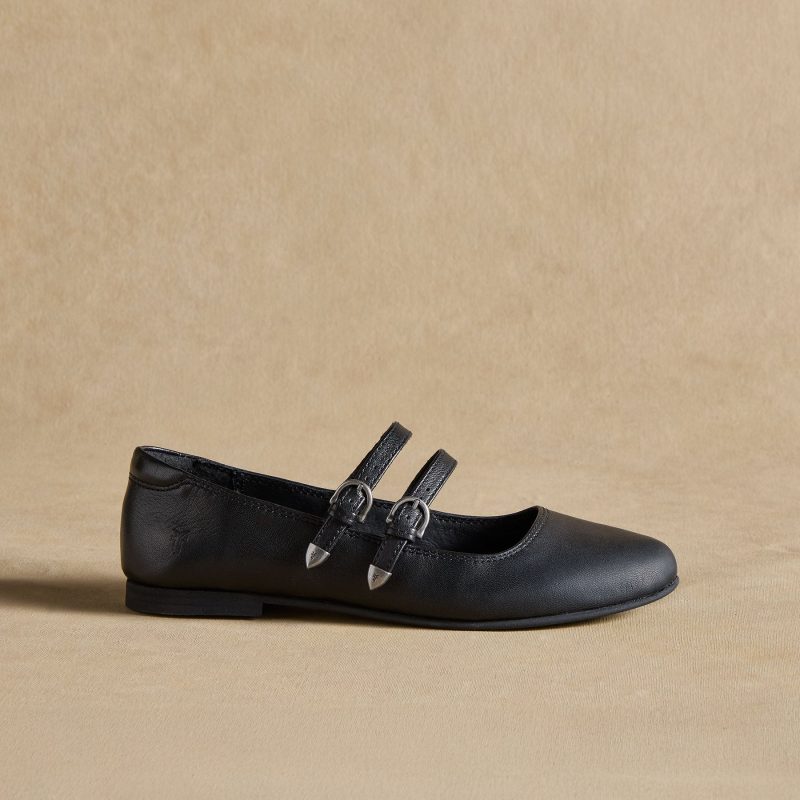 A classic Mary Jane with the extra oomph of brass-tipped double buckles. Carson is sure to be your go-to flat for years to come. Leather upper. insole and footbed. Whole and half sizes 6?C10. 11. .5 heel.