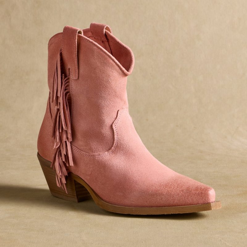 Go where the wind blows in these fringed. free-spirited short boots with side zip and pull-tabs for comfort and ease. Calf leather suede with rubber soles. Handcrafted in Italy. Exclusive. Euro whole sizes 36?C42. 36 (US 6). 37 (US 7). 38 (US 8). 39 (US 8.5). 40 (US 9). 41 (US 10). 42 (US 11). Approx. 2 heel.