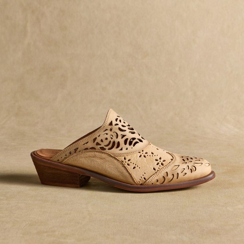 Lasercut flowers give these mules airiness. while the leather overlay and lined toe box add style and comfort. Sundance exclusive. Leather. Spain. Whole sizes 36-41. 36 (US 5.5). 37 (US 6.5). 38 (US 7.5). 39 (US 8.5). 40 (US 9.5). 41 (US 10).