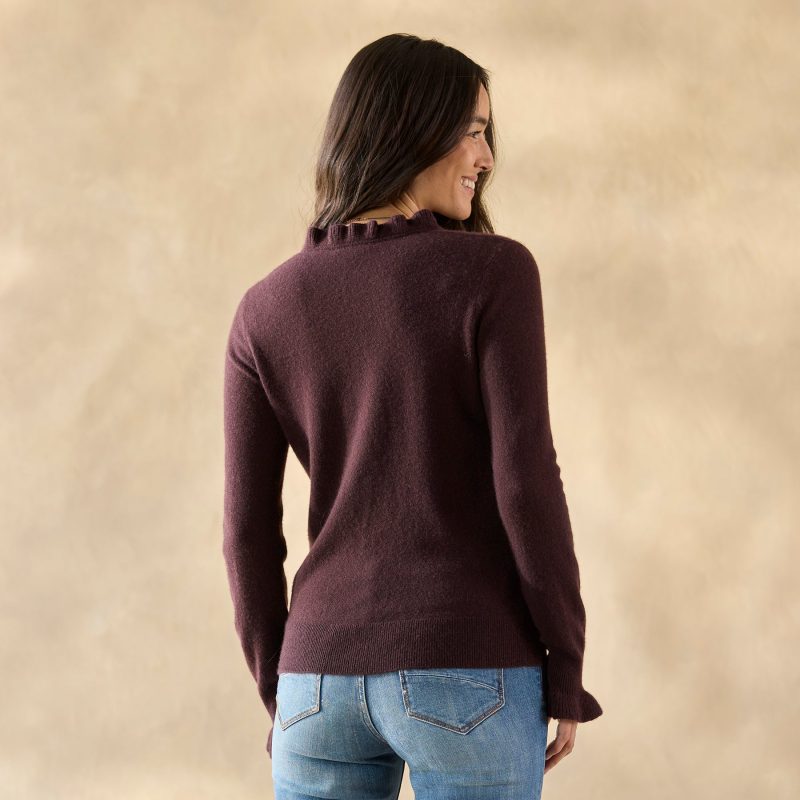 An update to a Sundance favorite. now in luxurious cashmere. Lightweight and cozy. with gentle. feminine ruffles at neckline and cuffs. Rib trim. Hand wash. Imported. Exclusive. Sizes XS (0?C2). S (4?C6). M (8?C10). L (12?C14). XL (16?C18). XXL (20?C22). Approx. 23.5l.