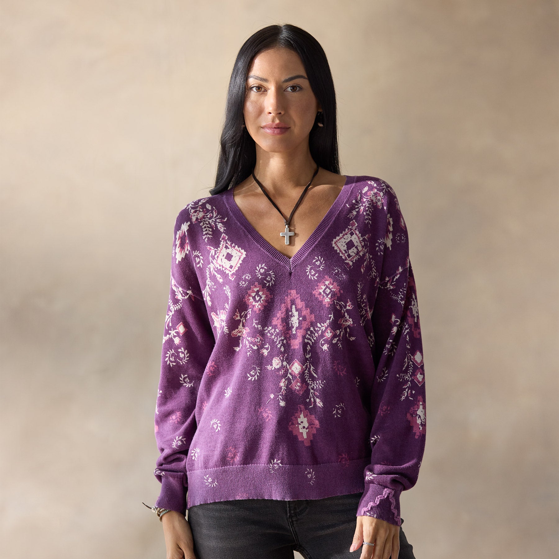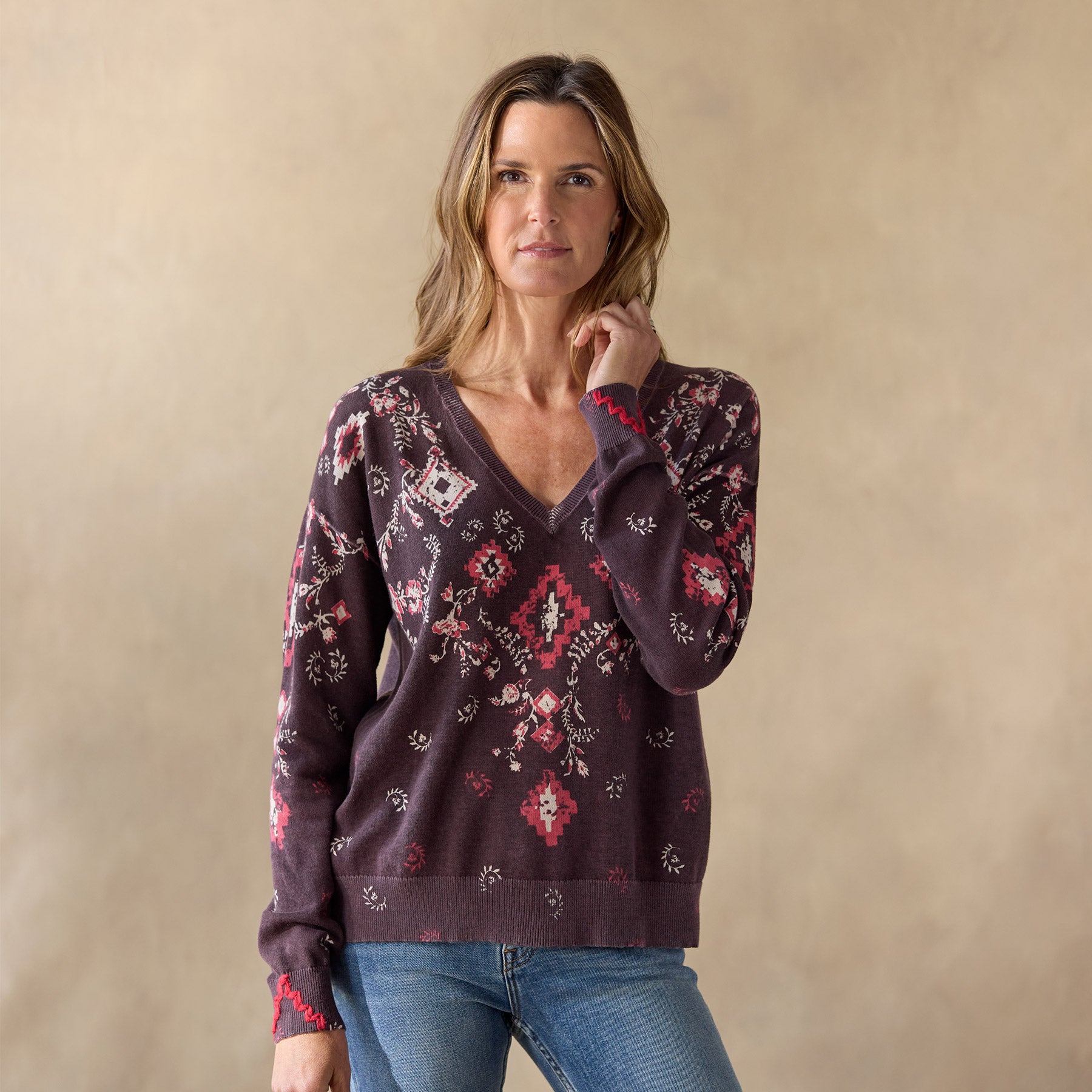 A new Sundance classic. with bandana/floral print front and back and hand-embroidered embellishment at the open V-neckline. Exposed seams. rib trim. relaxed fit. Cotton. Hand wash. Imported. Exclusive. Sizes XS (0–2). S (4–6). M (8–10). L (12–14). XL (16–18). XXL (20–22). Approx. 24l.