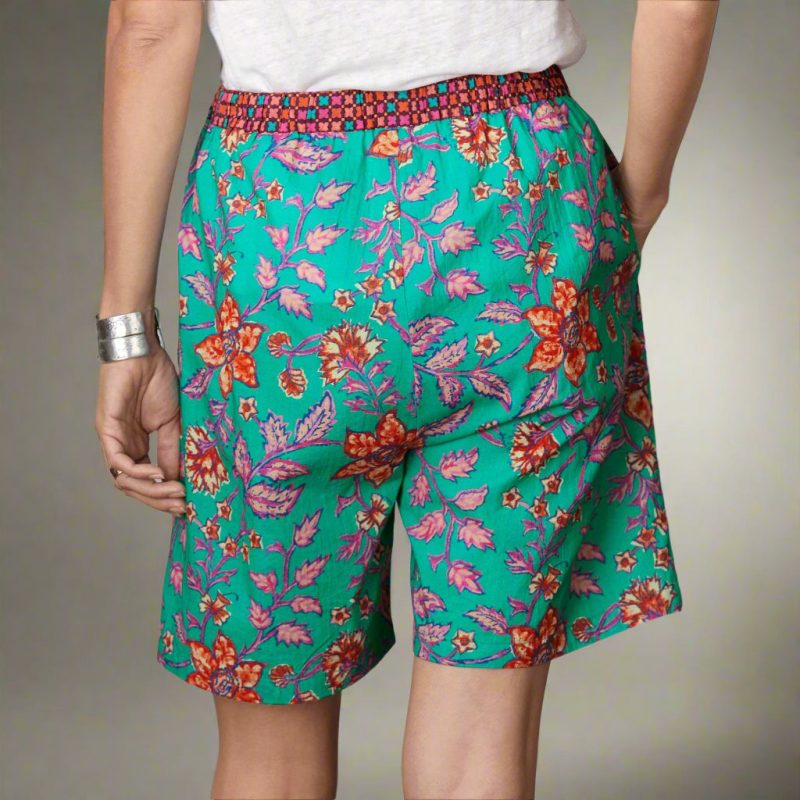 Vibrant prints add joy to our relaxed. high rise shorts with contrast print under the drawstring. Cotton. Machine wash. Imported. Exclusive. Sizes XS (0-2). S (4-6). M (8-10). L (12-14). XL (16-18). XXL (20-22). 7.25 inseam.
