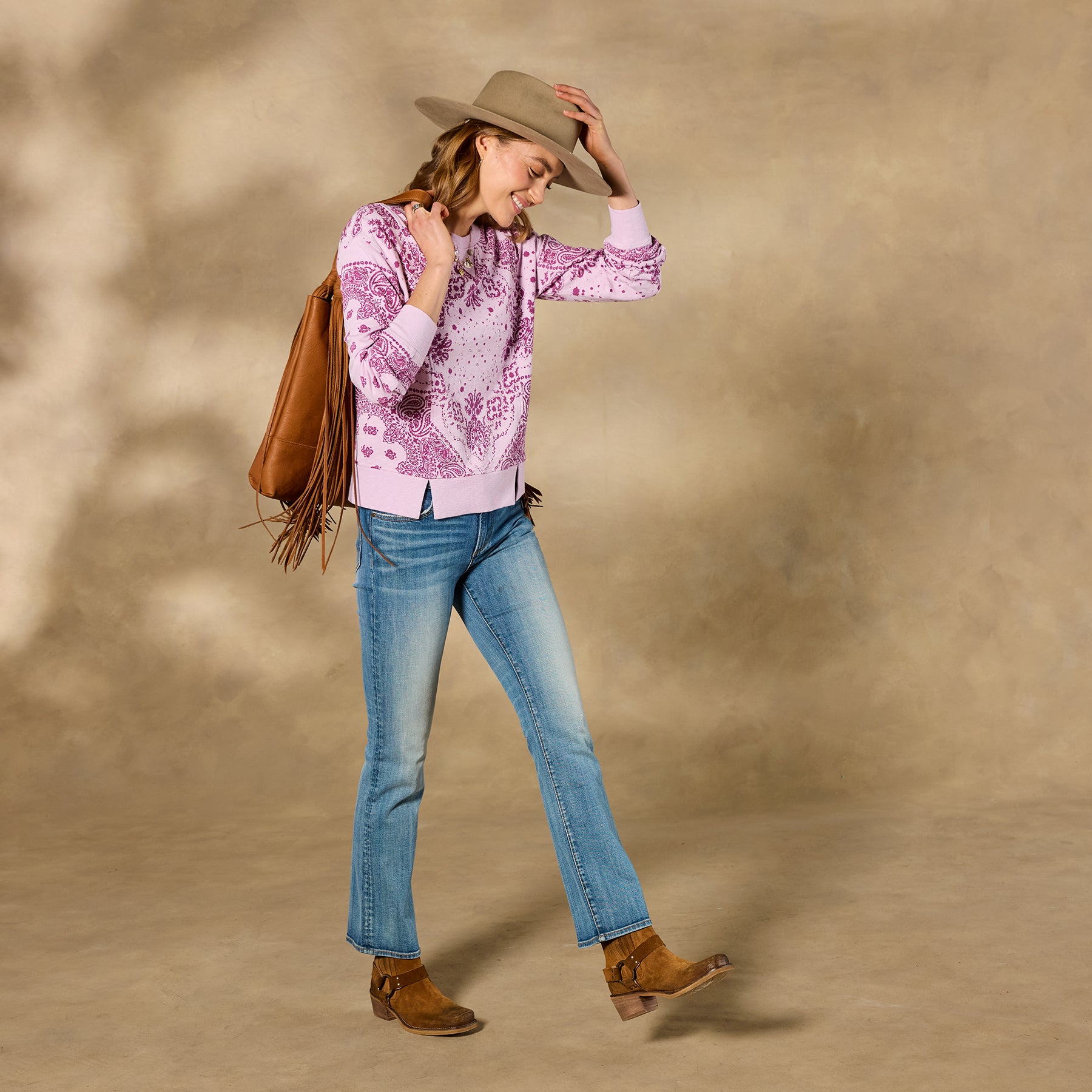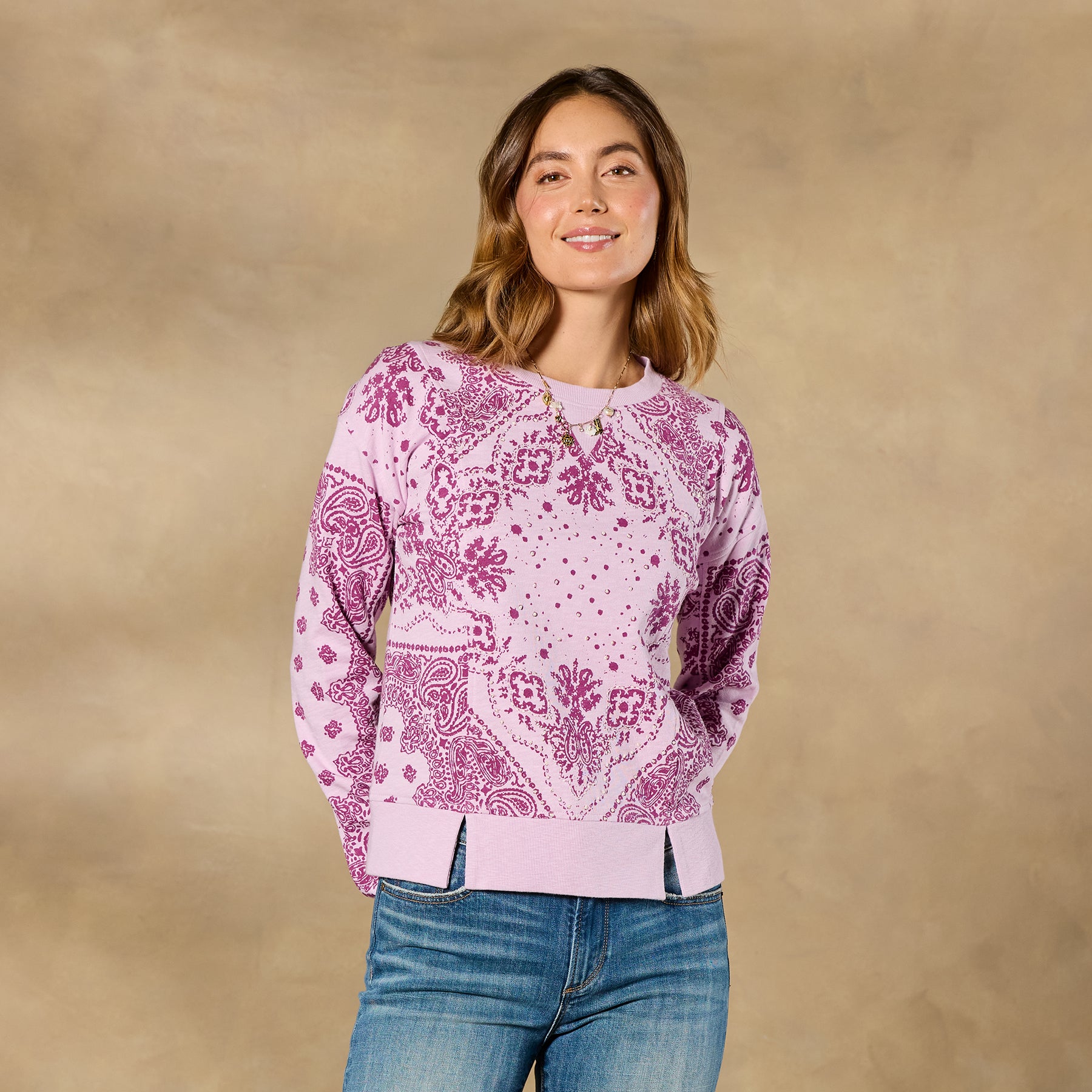 Our Maebelle Sweatshirt celebrates Western spirit with its charming bandana print. scattered embroidery. drop-shoulder silhouette and seam details. Cotton. Machine wash. Imported. Exclusive. Sizes XS (0?C2). S (4?C6). M (8?C10). L (12?C14). XL (16?C18). XXL (20?C22). Approx. 20l.