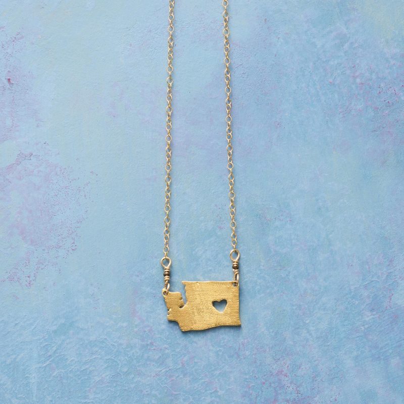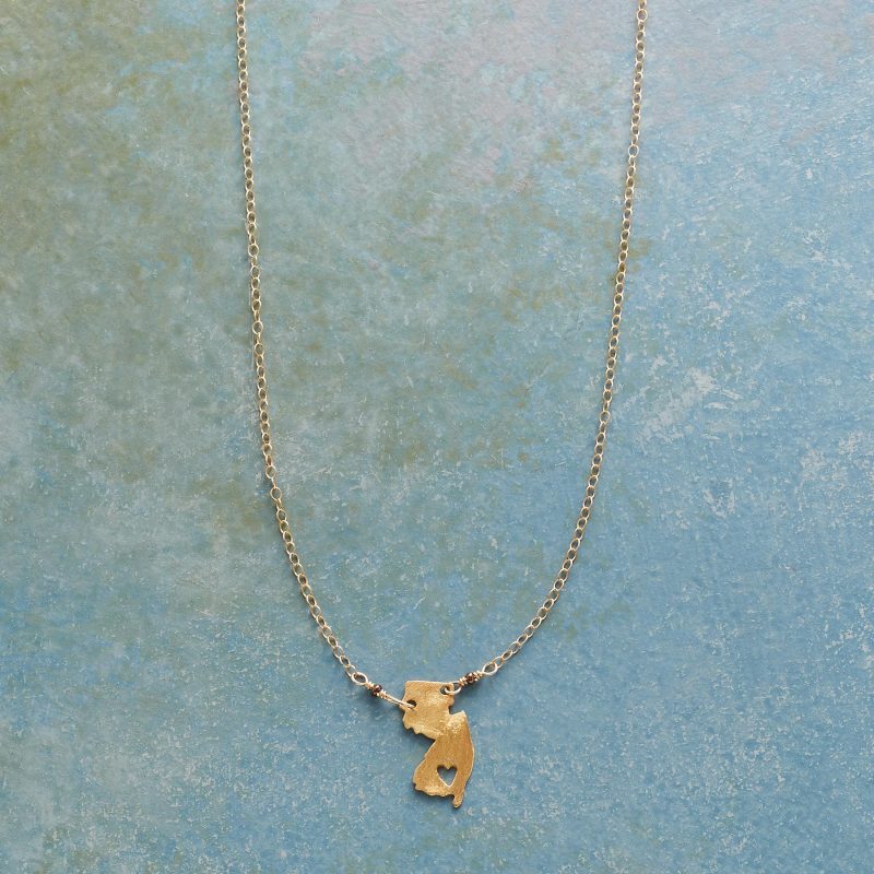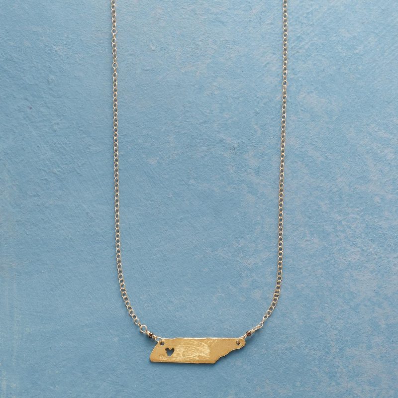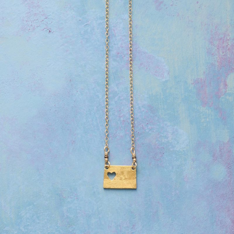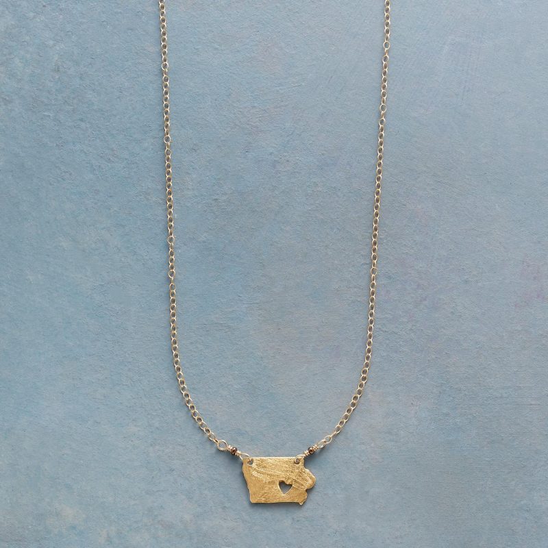 Celebrate your favorite state with our 18kt gold-plated charm strung on a 14kt gold-filled chain. A cut-out heart shows your love. Lobster clasp. Handcrafted. Exclusive. 17-18l