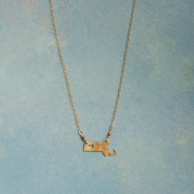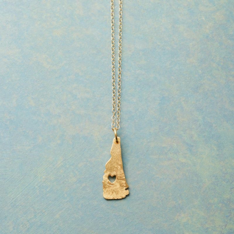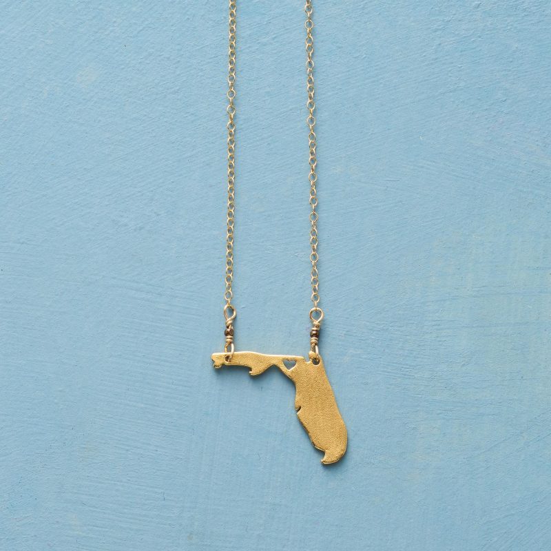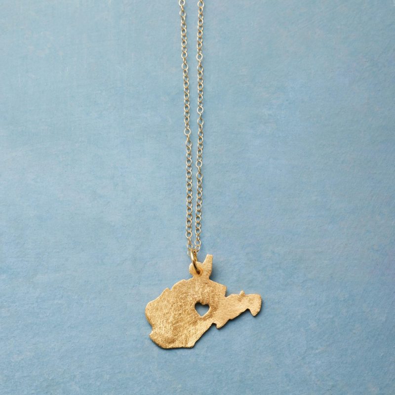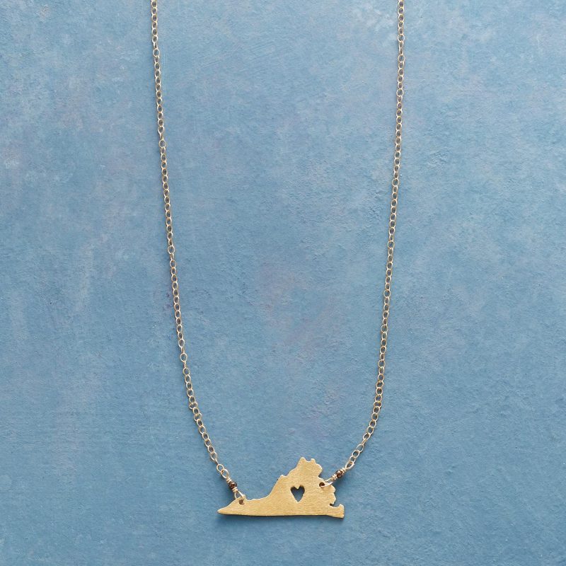 Celebrate your favorite state with our 18kt gold-plated charm strung on a 14kt gold-filled chain. A cut-out heart shows your love. Lobster clasp. Handcrafted. Exclusive. 17-18l