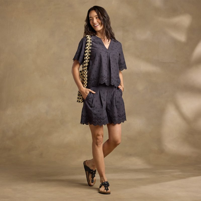 From brunch to the beach and beyond. our Stella Eyelet Shorts are ready for whatever the day holds! Crafted of lightweight laundered cotton with a scalloped eyelet hem. relaxed fit. elastic waist and side-seam pockets. Pair with our Tara Eyelet Top for an adorable matched set. Cotton. Machine wash. Imported. Sizes XS (0?C2). S (4?C6). M (8?C10). L (12?C14). XL (16?C18). XXL (20?C22). Approx. 4 inseam.