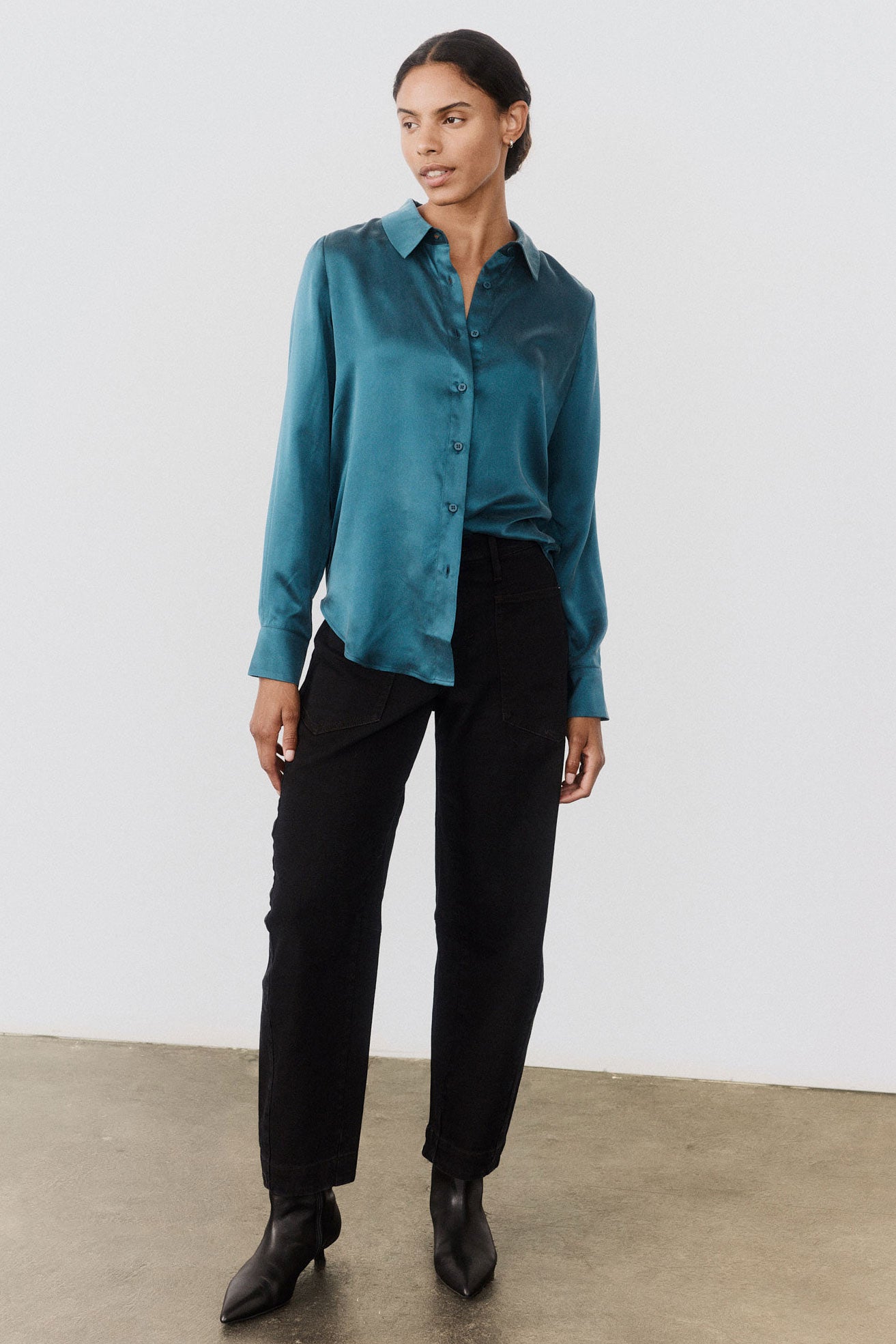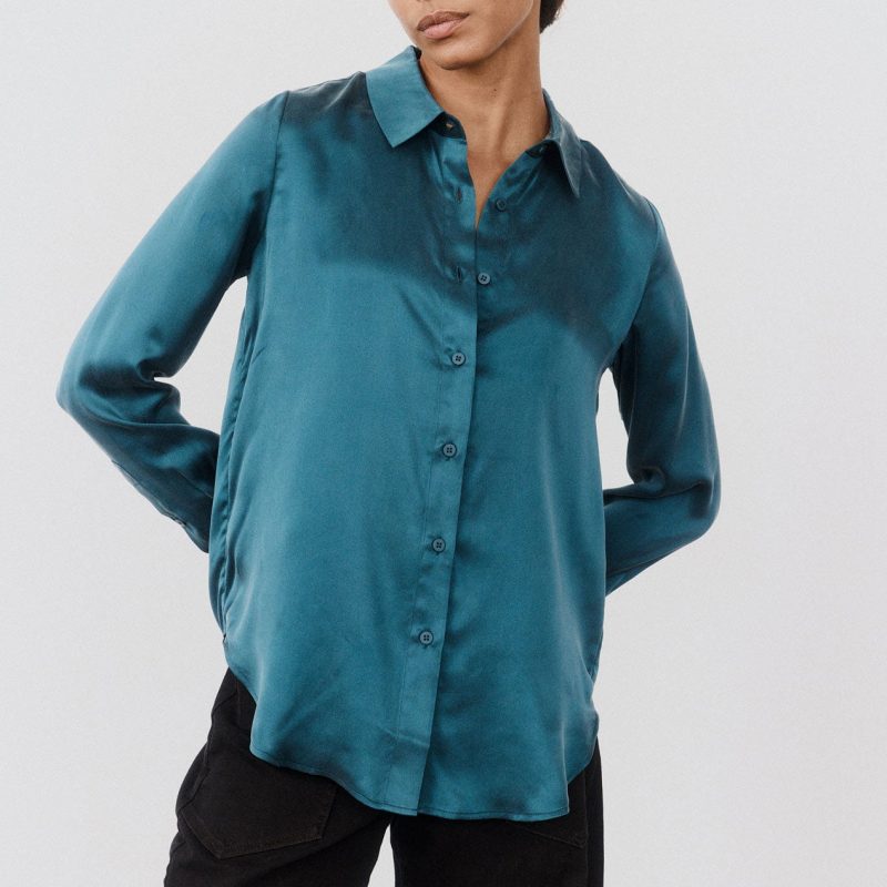 A timeless staple reimagined in Ruti’s signature washable silk. This button-down top combines the elegance of silk with the ease of everyday wear — fluid. refined. and effortlessly versatile.