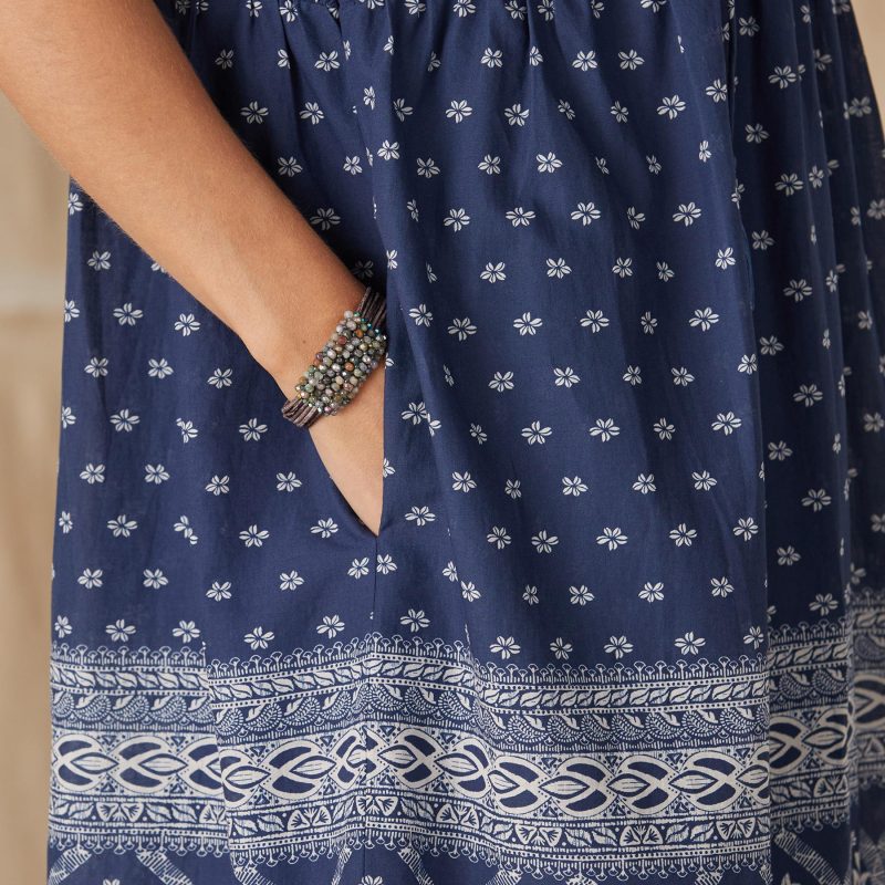 Loose. pop-over style in two contrasting prints reminiscent of a bandana. Open neck with tassels. Cotton. Hand wash. Imported. XS (0 to 2). S (4 to 6). M (8 to 10). L (12 to 14). XL (16 to 18). XXL (20 to 22). Approx. 47L.